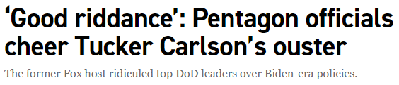 And now that the “fascist” Tucker Carlson is out, the Pentagon doesn’t have to worry about silly little things like “only 99% of the media goes along with what we say, not 100%.”