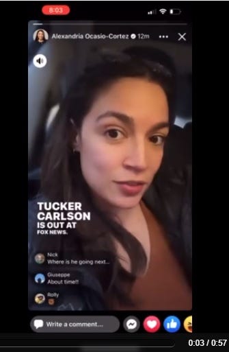 Long-time readers of Screaming into the Void know that one of my favorite subjects is about the malfeasance of the press becoming (or always being) the PR arm of The Swamp. The most recent example involves ex-liar-in-chief for the Biden administration Jen Psaski interviewing current Representative Alexandria Ocasio-Cortez. Take a listen to how casually AOC remarks (after being prodded by Psaki) that Tucker Carlson is dangerous and shouldn’t be allowed to be on TV: