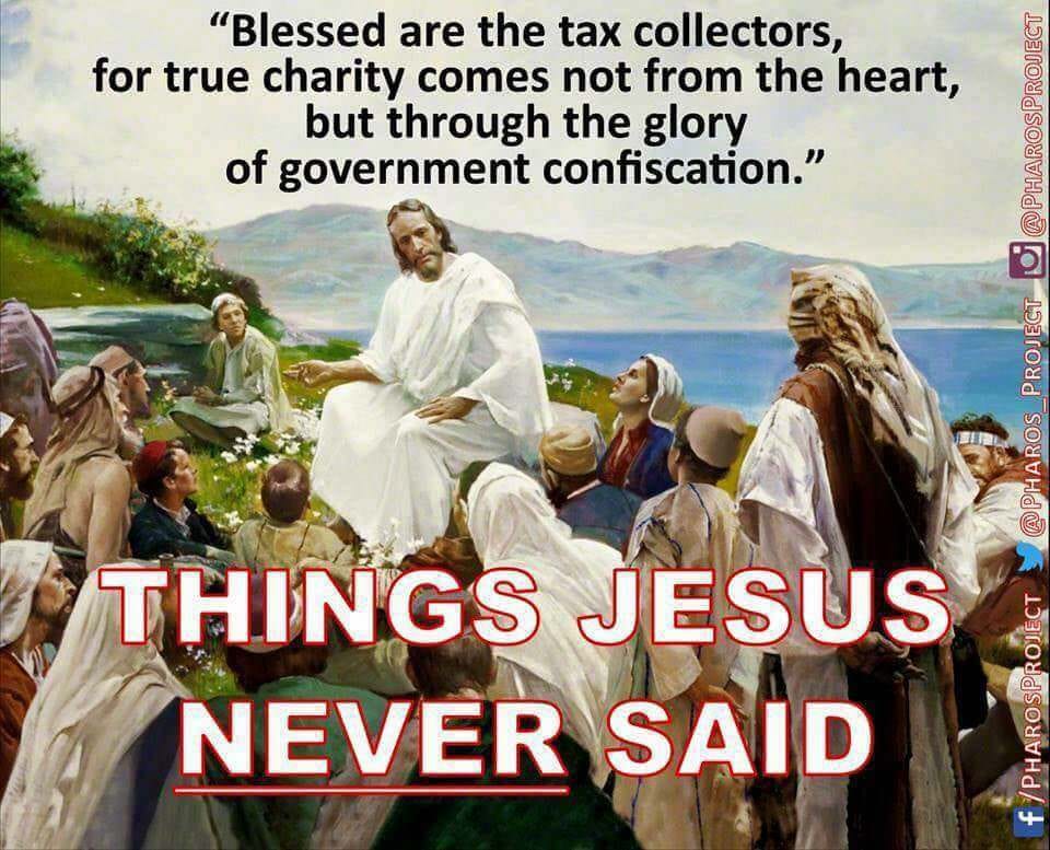 Once I asked my crazy lib ex-nun SIL to point me to the Gospel where Jesus tells his followers to form a coalition to lobby Pilate to tax the rich in order to fulfill the obligation to help the poor.