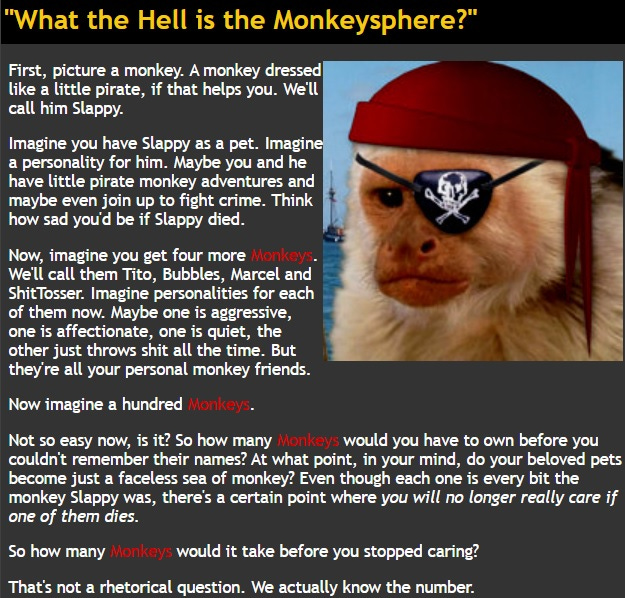 First, we visit the monkeysphere. If you haven’t read this brilliant article from The Before Times of the internet, here’s your chance! A preview: