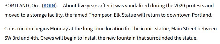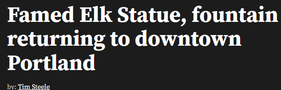 I’ve mentioned Portland’s famous Thompson Elk Statue a few times, but it looks like it’s (finally) getting reinstalled!