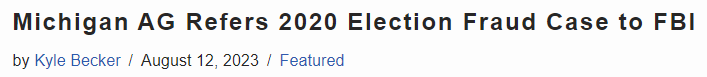 Let’s start with an update to the Michigan 2020 election fiasco involving over 100,000 fraudulent voter applications. Just a couple weeks after charging citizens in a “fake electors” plot (because nobody could POSSIBLY actually think that the Michigan election was shady), the Michigan AG has referred this ‘new’ election fraud case to the FBI (where it will probably go to die, but that’s another issue).