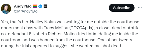 Andy Ngo himself commented on the video: