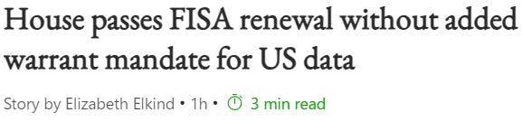 And once the warrant requirement failed, it was smooth sailing for the FISA renewal: