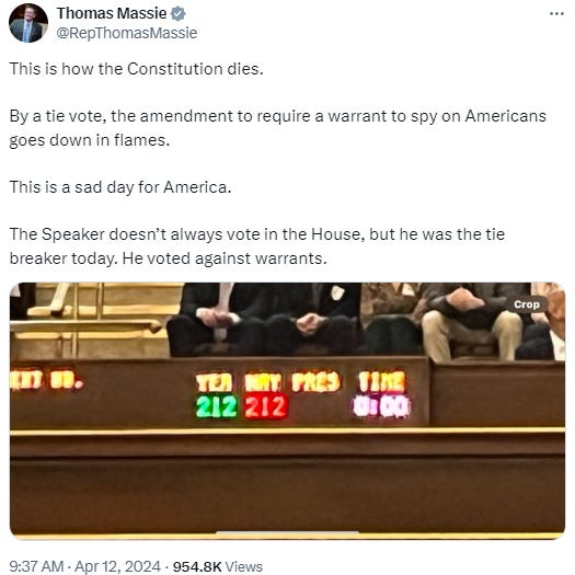 You won’t be surprised to see some of the people who voted against requiring warrants to spy on Americans:
